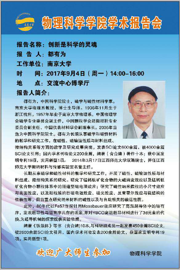 2017物理前沿学术报告第二十八讲:创新是科学的灵魂