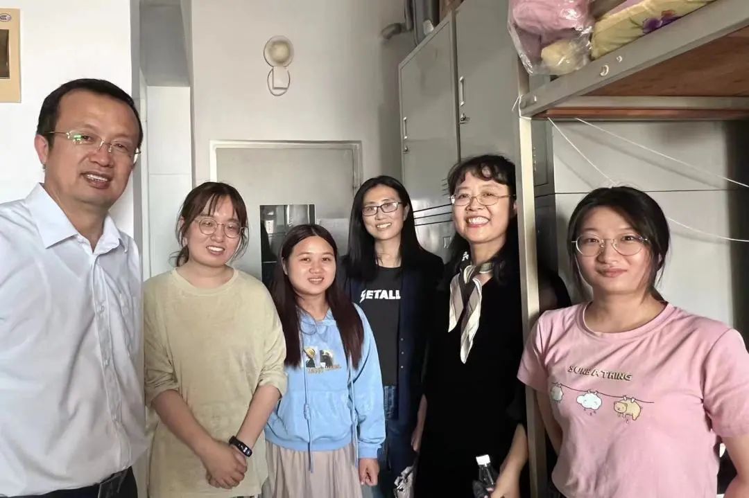 “准备什么时间离校?”“工作落实好了吗?”“未来将去哪个学校深造?”每到一个寝室,院领导们都会对毕业生表示亲切地关怀和慰问,关切地询问同学们的工作落实情况、毕业深造情况以及生活近况,再三嘱咐毕业生仔细核对离校注意事项,叮嘱大家离校期间提高安全防范意识,时刻注意自身安全。